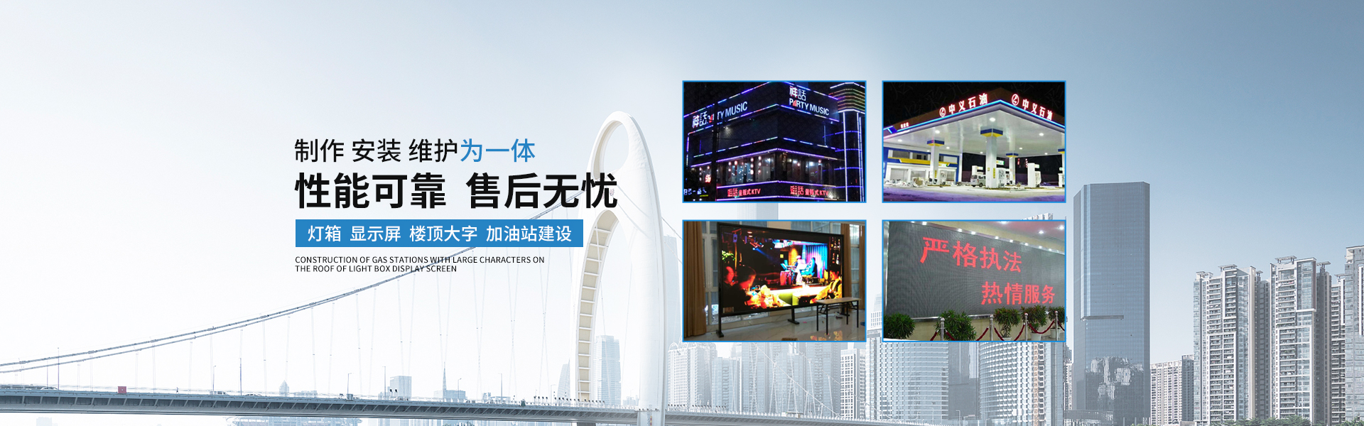 洛陽市炫彩光電科技有限公司(http://www_bstjhq_com.printer-sunway.com.cn)是一家集LED燈飾、LED電子顯示屏、亮化照明工程、洛陽led電子屏、洛陽亮化工程、洛陽發(fā)光字、洛陽樓頂大字、洛陽門頭裝修、洛陽顯示屏、洛陽室內(nèi)外全彩屏等廣告制作于一體的專業(yè)化企業(yè)。公司擁有一批高素質(zhì)的霓虹、廣告設(shè)計(jì)制作、安裝維護(hù)為一體的專業(yè)技術(shù)人才,為公司的生產(chǎn)經(jīng)營銷售和工程服務(wù)提供了可靠的保障。公司本著以市場為導(dǎo)向,以質(zhì)量求生存,以科技促發(fā)展的經(jīng)營理念,以誠信、務(wù)實(shí)、創(chuàng)新的企業(yè)精神,不斷推陳出新,為眾多著名機(jī)構(gòu)完成了形象展示工程服務(wù),無論規(guī)劃設(shè)計(jì),選材加工,還是安裝配套服務(wù)等都積累了豐富的經(jīng)驗(yàn),贏得了廣大客戶的信任和支持。公司產(chǎn)品有LED模組、數(shù)碼管、流星雨燈、埋地?zé)簟⑾磯簟Ⅻc(diǎn)光源、光纖燈···